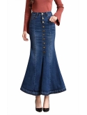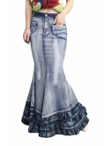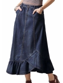Features:Full Length Denim Skirt with side pockets, fit and flare fishtail skirts, unique draping design,3D stereo clipping.