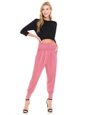 This relaxed pants feature fold-over banded waist, tapered leg with cuffs, pull on closure and concealed side pockets. They are made of soft jersey knit that has great stretch.