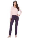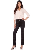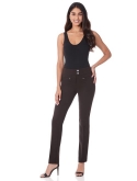 BEYOND COMFORT: Pull-On styling and hidden front tummy control panel. Smooth contour waistband with accent snaps at the waist. Small functional front pockets can fit a key card, faux back pockets.