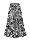 Plus Size Maxi Skirt with Super Eleastic Waist,Leopard Printed Pleated Skirt