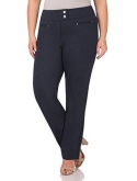 BEYOND COMFORT: Pull-On styling and hidden front tummy control panel. Smooth contour waistband with accent snaps at the waist add a touch of bling. Functional front pockets, faux back pockets.