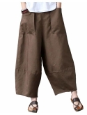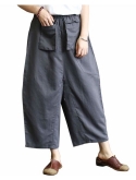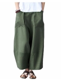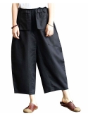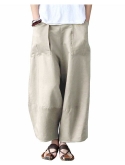 Solid Color,Casual Low Crotch,Wide Leg,Patchwork Style,Back with elastic waist,Capri Pants,Cropped Trousers
