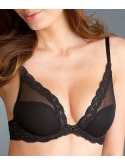 Contour plunge with average coverage outer cover Lace frames around the body Stretch straps with adjustment in the back