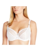 Three section balcony shape in ridge lace with matt silver metal trims Lined undercup for additional shape and support