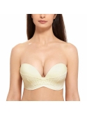 Slightly padded cups for fine shaping and nipple coverage Silicon and grip strip work together for firm hold High wired for increased support and enhanced shaping Low cut with lace detail for different occasions Recommend a larger band size