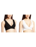 Soft sleep bra featuring surplice neckline for easy nursing