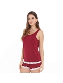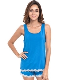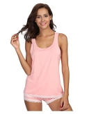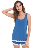 Silky soft pj set, highly breathable with proper stretch Cool to the touch, better sleep wear for people sleep hot easily Classic tank top. Lace fringed sleep short set Better pajama gift for all ladies and any occassions