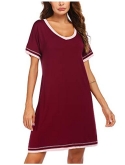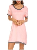 PRODUCT FEATURES:Sexy V-neck nightgowns+Solid color, contrasting trim decor around the neck and the sleeves+Nightshirts with roomy and simple pullover styling.