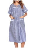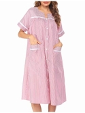 Classic & ElegantPatio dresses designed with round neck, button front style, short sleeve, two pockets, midi length and H-shape cut. The easy button down closure eliminates difficulty when slipping on and off. Two roomy front pockets make it easy to carry your belongings. Classic striped and printed loungewear makes you more charming & attractive.