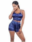 Features: Pink shorts pajamas.Sexy lace satin pajams sleepwear, Adjustable shoulder strap cami, Elastic waist shorts,Bow and lace decoration, cute and sexy,Sexy Lingerie Set, Women shorts set pajamas, Satin Sleepwear.