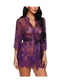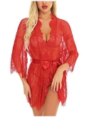 Package Content: 1x Lace Kimono Lingerie Robe, 1x G-string and 1x Belt