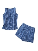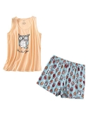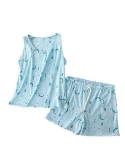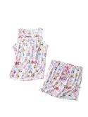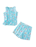 Cartoon print sleeveless top and shorts, suitable for every age group, simple and lovely,Available in various cartoon prints,there is always one cartoon print adjust for youPajamas set with cartoon print presents an adorable style.