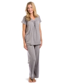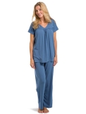 LUXURIOUS DESIGN: Its all in the details. Our short sleeve top has a relaxed fit from chest through to hip. It has a trimmed v-shaped neckline and gathered front yoke detail for a flattering look. Our elastic waist, full length pant brings comfort to another level. We have added an adjustable drawstring to customize fit even more.