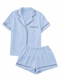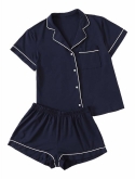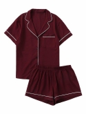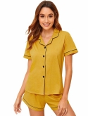 Women's Notch Collar Short Sleeve Sleepwear Two Piece Pajama Set