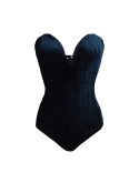 DESIGNS: Button closure detail ( Solve the trouble for toilet and easier to undress) Front bra with deep v neck, back cross bandage (adjust size)