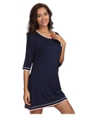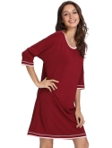 Extremely Soft, breathable and moisture wicking. Contrast color trimmed at the scoop neck, cuff and hem. Loose style, easy fit. Slant 3/4 Sleeve to the forearm. Length:34.6"-36.2". Good choice for people who overheat at nights.