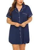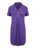 FEATURES - Short-sleeve striped boyfriend shirt style nightgownFull button up shirt,The bamboo viscose and cotton is naturally, ensure the heath of different kind skin