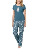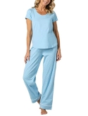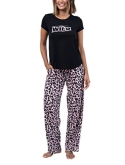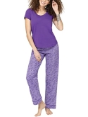 Two-Piece Cotton Set - Women's soft cotton pajama set features a short-sleeve scoop neck tee and coordinating long pajama pants with an elastic, drawstring waist; pants are an allover pattern; tops are solid or have coordinating graphic; exclusive prints and patterns.