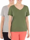 Women's Essential Pima Cotton V-Neck T-Shirt, 2 Pack Bundle:Model is 5.8" wearing Size Small60% Pima Cotton / 40% Recycled Polyester2Pack V-Neck BundlePima is a Premium Cotton that is made of strong fibers for a smoother and softer handfeelNew and Improved FitV-NecklineShort Sleeves25.5" body length for size smallMachine Wash Cold