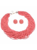 Fashion Multilayer Seed Bead Chain Choker Collar Necklace Earrings Set Cluster Strand Handmade Bib Statement Necklace