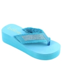 Fabric upper with sparkling rhinestones detail. Easy slip-on flip flop sandal. Best for daily use Durable nylon toe post. Man-made lining. EVA platform and wedge offer all-day comfort. USA Seller - FIRST PRODUCTS, INC.