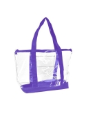FEATURES: Main Compartment (Zippered Top), 1 Front Pocket, 1 Inner Zippered Pouch MATERIAL: PVC, Polyester Fabric Straps COLOR: Transparent / Clear CLOSURE: Zippered Top, Flap open Pocket INTENDED USES: Work, Shopping, Handbag, Security Bag