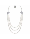 The length of each single layer: 17.3", 29.1", 31.5". Length of extension chain: 2.56". Diameter of the imitation pearls: 8 mm. Perfect length to build a sense of drape.