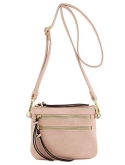 8" (W) x 5.75" (H) x 0.5" (D) Zipper closure Adjustable shoulder strap with 24" drop & 7.5" detachable wrist strap Faux leather & gold tone hardware 1 zipper pocket & 1 open pocket inside