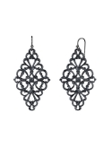 Vintage-inspired earrings featuring diamond-shape drops composed of swirling metal filigree Fishhook backings Made in the USA