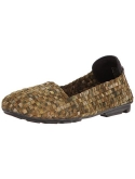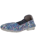 Basket weave elastic forms the flexible sihouette of an easy slip on skimmer Woven elastic upper Easy slip on styling Memory foam anti-bacterial insole Durable rubber outsole