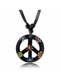 The length of the handmade wooden peace sign is 1.37 inches in diameter. The necklace length can be adjusted by sliding the knots on the cotton cord.