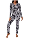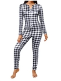 The women onesie pjs featuring O-neck sleepwear, long sleeves nightwear, front button loungewear tops and full length pajamas pants design. Soft lightweight and breathable fabric, good for sleepwear jumpsuit.