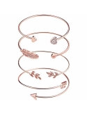 Cuff Bracelet Set contains 4 bracelets, with arrow, olive leaf, feather and crystal heart, special and fashion charms.