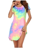 Comfy. Short sleeve and knee length pajama dress, feeling much freedom while you are walking. Appropriate knee lenght, fine tailoring. It is a great choice to wear this night shirt in your home