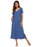 LOOK ELEGANT&LUXURY:Smooth and soft as silk but more durable, performance in breathable cotton and polyester. Deep V Neckline,Full Length with pockets style of this nightshirt is elegantly oversized, giving you a dramatic and elegant look.Lounge in style and feel like royalty every day in this soft and comfortable sleeping dress