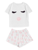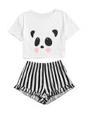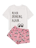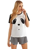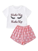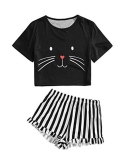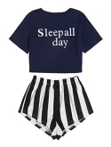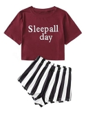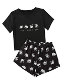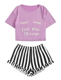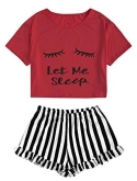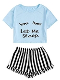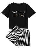 lightweight and stretch fabric Round neck, short sleeve, print, casual and cute Two piece pajama set,sleep tee and shorts Please refer to the item description below for size details