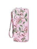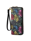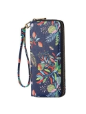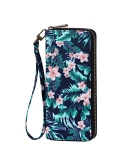 Roulens Wallet for Women RFID Blocking PU Leather Leaf Pendant Card Holder Phone Checkbook Organizer Zipper Coin Purse