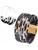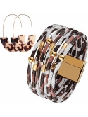 Material: this wide wrap bracelet is made of artificial leather with leopard pattern and the metal pipe is made of brass, the color is not easy to fade, and the leopard earring is made of acrylic, that is safe and durable