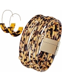 Size: this women's leather bracelet measures about 7.5 inches in length and 0.8 inches in width, fit most women and girls' wrist, with weight approximately 20 g/ 0.71 oz, very light to wear, the cheetah earrings measures about 6.5 cm/ 2.56 inches in length and 5 cm/ 1.97 inches in width