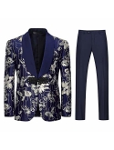 Novelty Floral Design* The traditionally tuxedos are often black or white, but the Boyland gives you more choice. The tuxedo feature with its unique golden and navy floral design pattern, perfectly matched its navy blue lapel and vest.