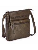 11Height x 11" Length x 1.75 Width.1 Front gusseted zippered pocket, 1 Drop lining zippered pocket in front and 1 main zipper pocket(back zip pocket inside the main zipper pocket to keep valuables well secured). Easy to take iPad (9.7" Size), lipsticks, sun cream, cellphone, car keys, small makeups, checkbook wallet case, charger, etc.Strong shoulder strap(2-layer design, both is leather), strap lengths about 51 inches, fully adjustable.