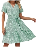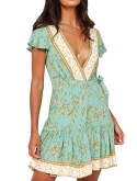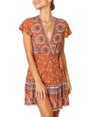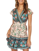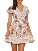 Calling all Boho loves, you need our "Amazing Grace Dress" in your wardrobe.WRAP STYLE DRESS--Deep V NeckCap sleeve,Ruffle hemline,Floral print,Tie Waist,fit and flare dress in high wastline perfectly shows your good figure