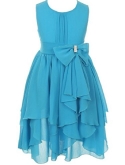 Dress is all chiffon with an adorable rhinestone accented bow.
