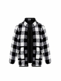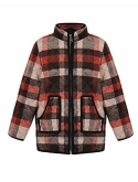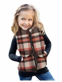 Features: plaid, zipper closure, stand collar, sleeveless, color block, lightweight.