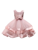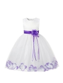 Loose flowers petals floating around the hems of tulle skirt. The waistline is decorated with cute flower in front to make this dress more elegant and slim