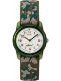 Kids' Green Analog Watch, Camo Elastic Fabric Strap