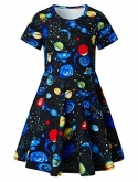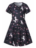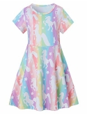 Adorable Dress With Dinosaur/Unicorn/mermaid Print--Your daughter, along with every girl her age, is obsessed with unicorns,dinosaur.,mermaid. There no doubt, these fun dress is perfect for your kids rainbow unicorn/dinosaur party!