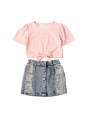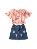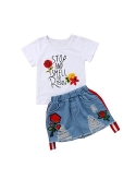 Package include:Toddler Girls Summer Two Piece Clothes Set,1PC T-shirt+1PC Jean Skirt