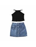 Features:Toddler baby girl summer skirt denim clothes set,short sleeve T-shirt tops with button denim skirt dress, make your child more attractive.