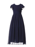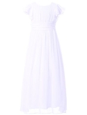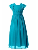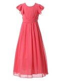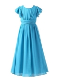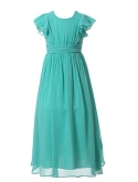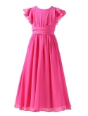 LONG MESH DRESS: stylishlong dress . Mesh bodice with ruched waist band . Long chiffon is lightweight and allows for movement. It is age appropriate and classy . Your junior bridesmaids will lookamazing in this dress!